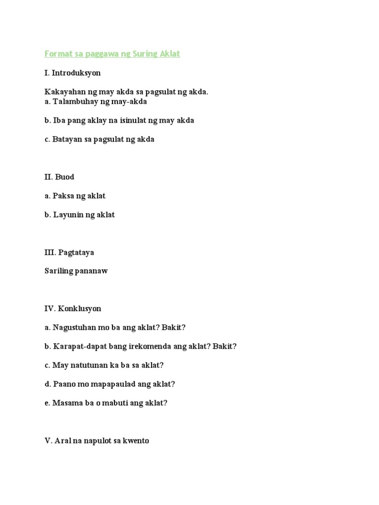 Format Sa Paggawa Ng Suring Aklat Pdf